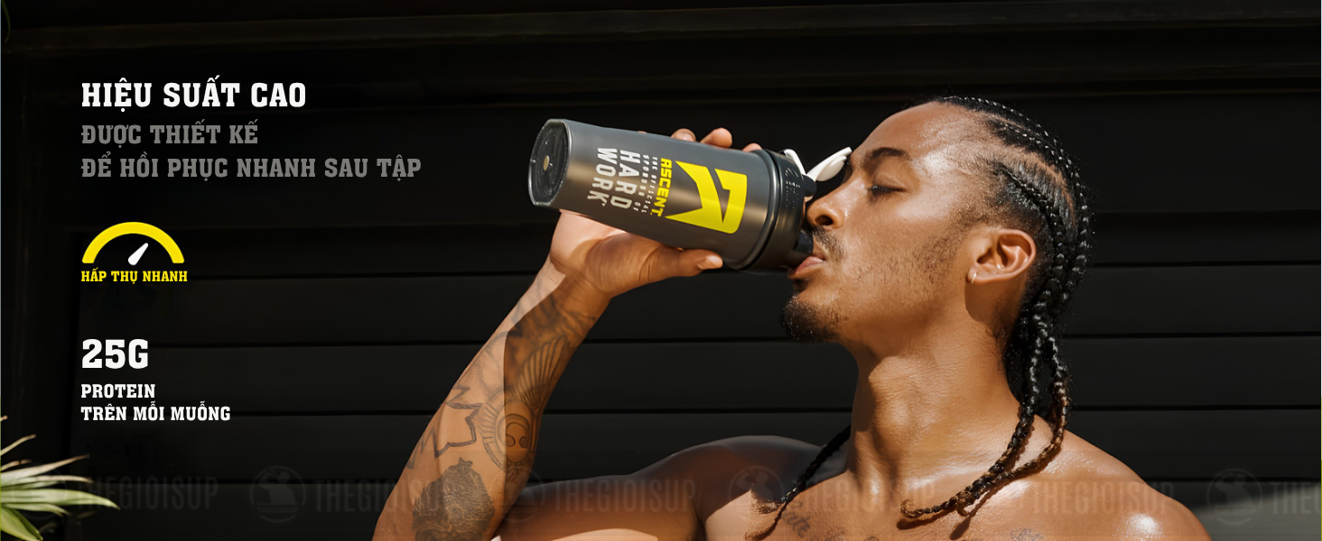 Hiện Ascent 100% Whey đang được bày bán phổ biến khắp các cửa hàng supplement, nhưng Thegioisup chính là nơi phân phối Ascent 100% Whey chính hãng với giá tốt nhất thị trường