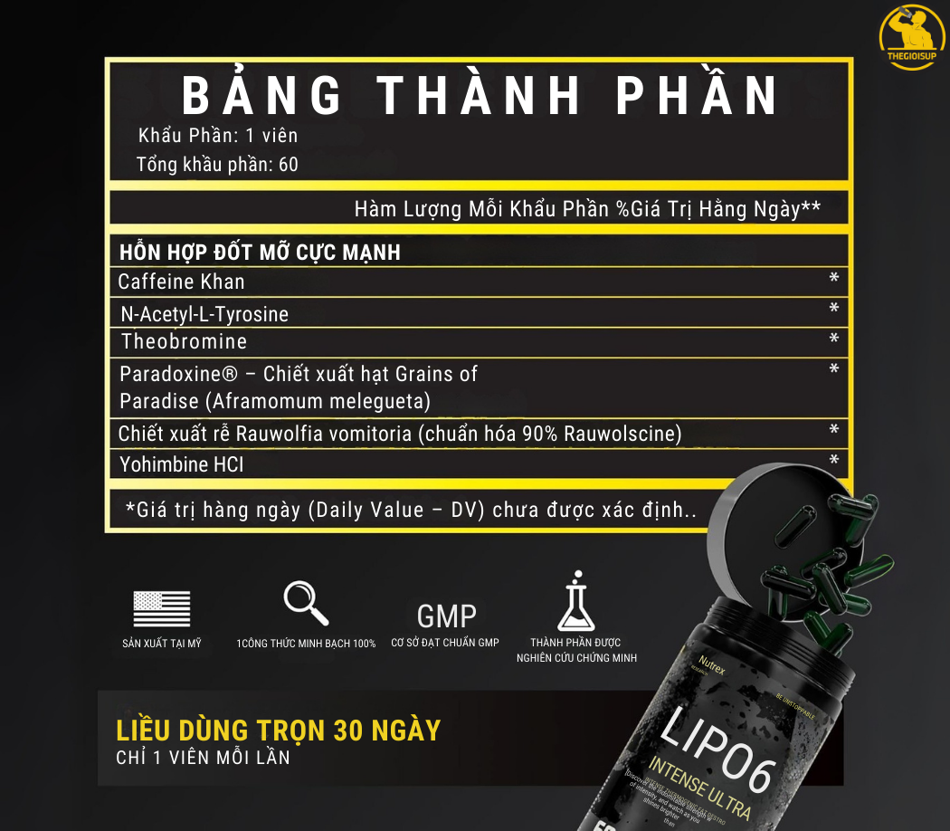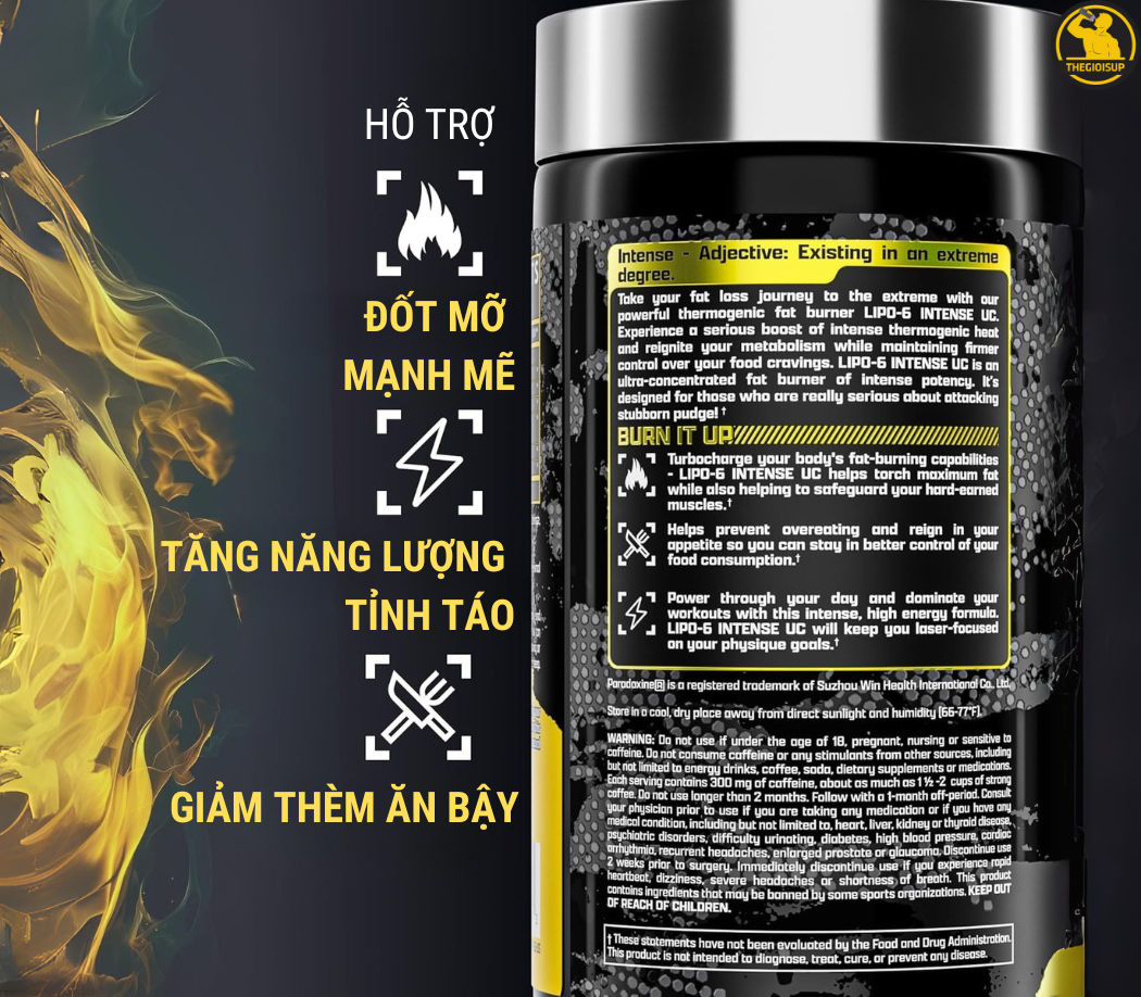 Thực phẩm bổ sung thermogenic tiên tiến với công thức toàn diện gồm nhiều hoạt chất đốt mỡ mạnh mẽ. Trải nghiệm nguồn năng lượng bền bỉ, giảm cơn thèm ăn và khả năng tập trung cao độ suốt nhiều giờ, không lo bồn chồn hay sụt năng lượng.